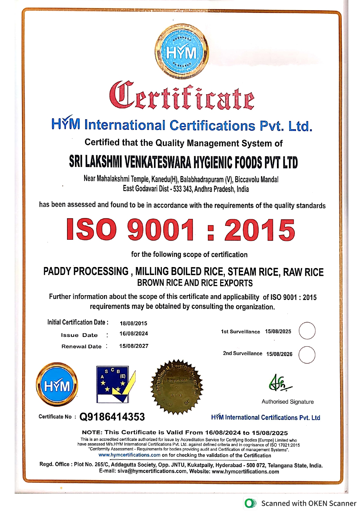 At Sri Lakshmi Venkateswara Hygienic Foods Pvt. Ltd. and Sri Veera Venkata Satyanarayana Rice Mill, we combine tradition, innovation, and uncompromising standards to deliver rice that nourishes homes across India and beyond. With a vision to be the leading rice exporter on the global stage, we continue to invest in excellence — from grain to grain.